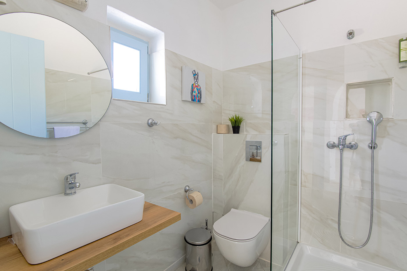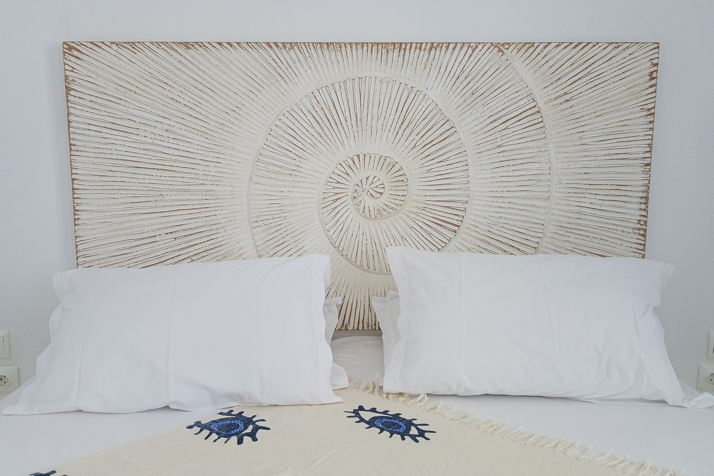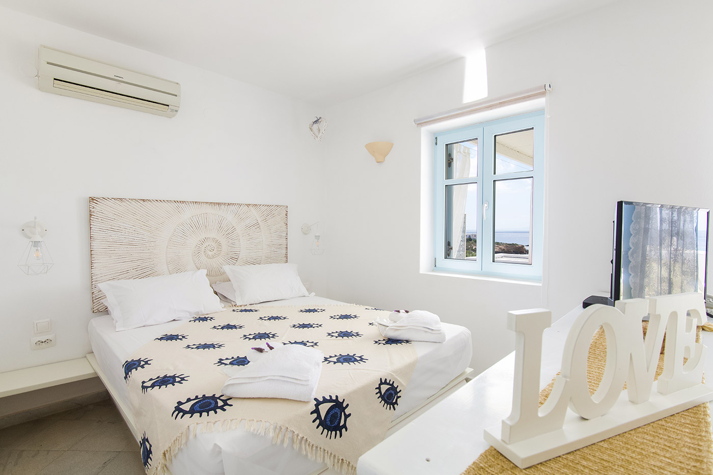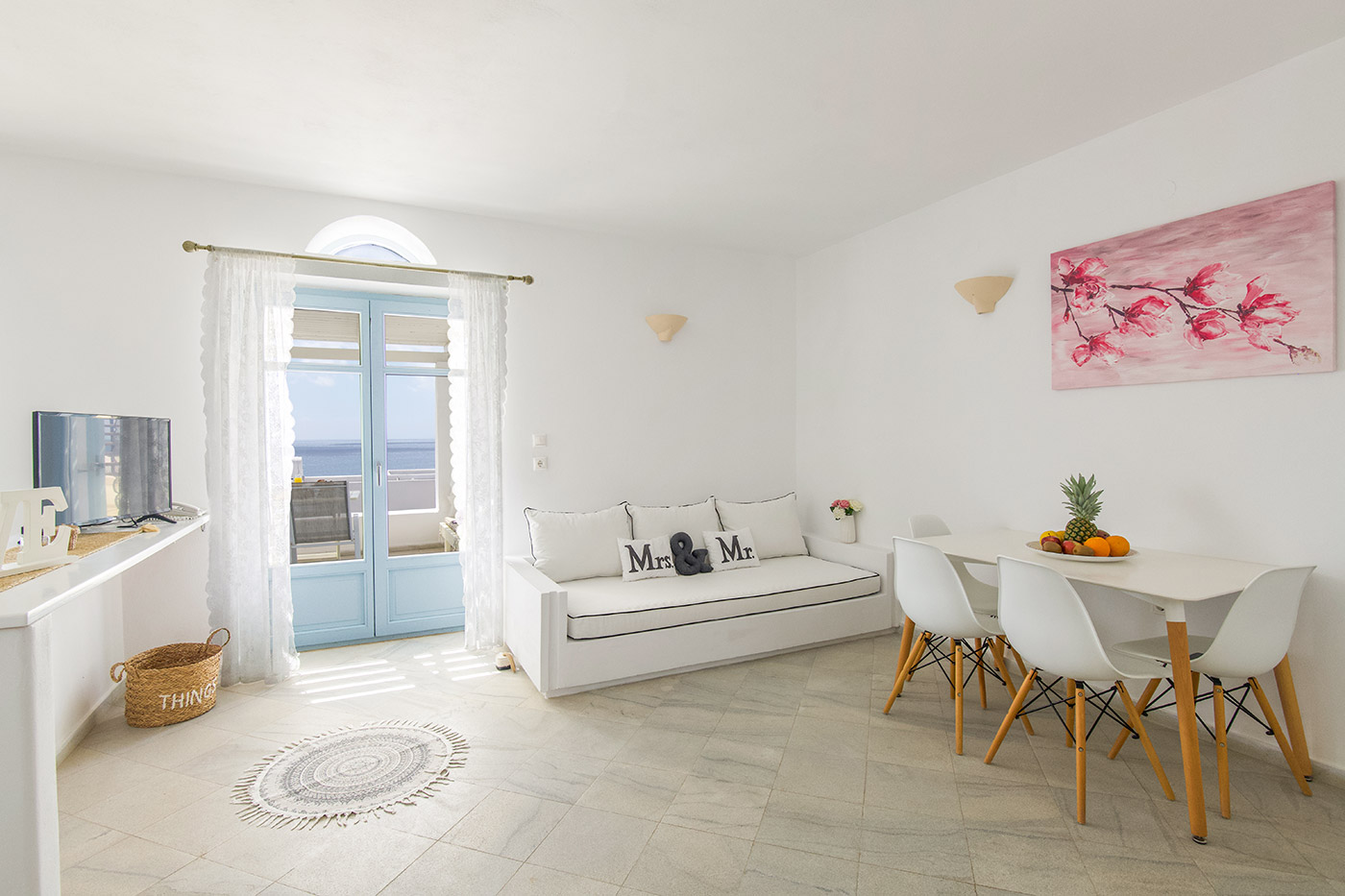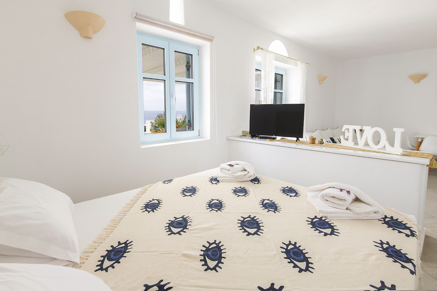Deluxe double apartment is an ideal choice for 2 people who want to live romantic holiday in Paros. With an area of 25 sq.m., all the equipment, tasteful décor, modern comforts and a private outdoor mini spa with unlimited sea view, the elegant apartment offers all the necessary conditions for relax and unforgettable moments.