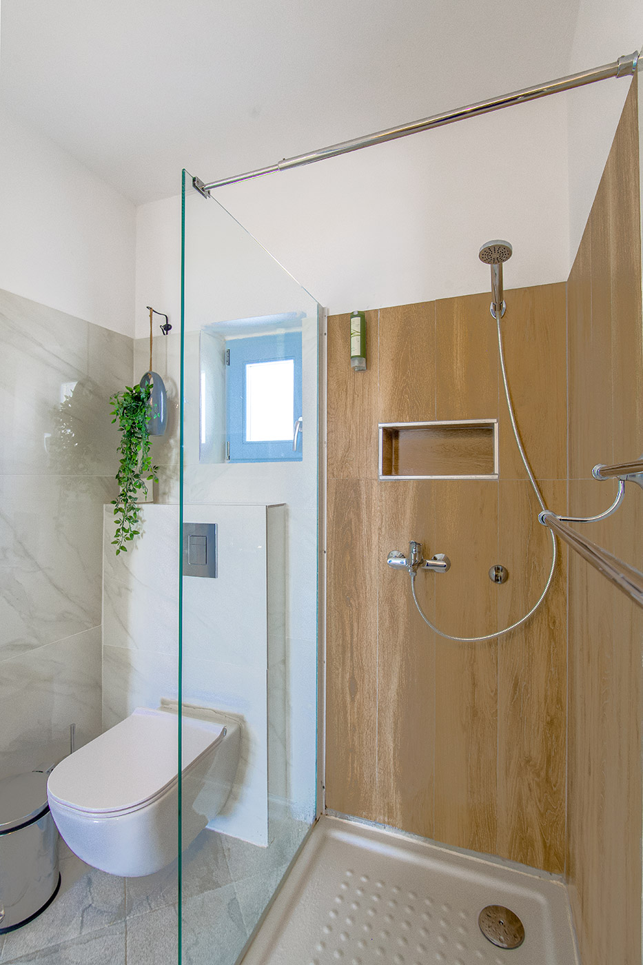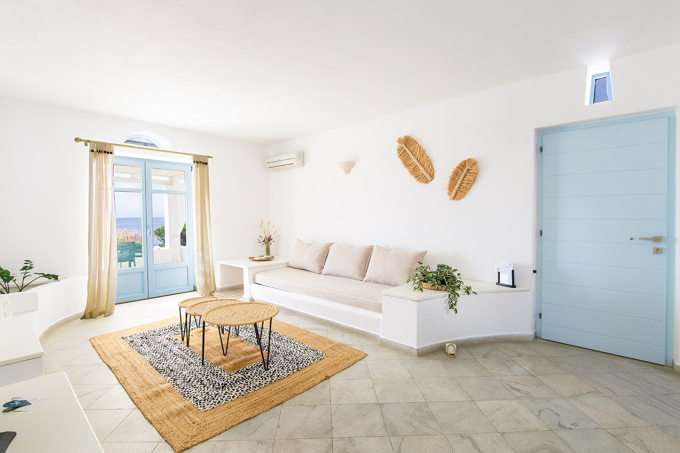 The apartment of 40.00 sq.m. has one bedroom with double bed, one living room with one comfortable sofa bed, fully equipped kitchen and bathroom. It is an ideal apartment for small families up to three and also for couples. The private veranda of 20sq.m. with exterior furniture and lounge beds is ideal for relaxation moments.